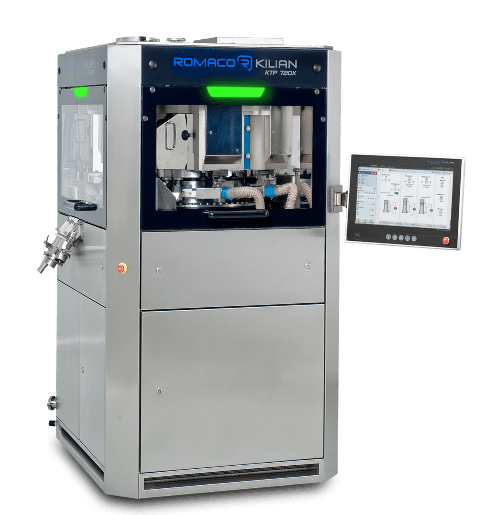 La KTP 720X es una máquina fiable, versátil y de alta velocidad para el tableteado de productos farmacéuticos. Se ha optimizado para conseguir el máximo rendimiento con el mínimo desgaste.