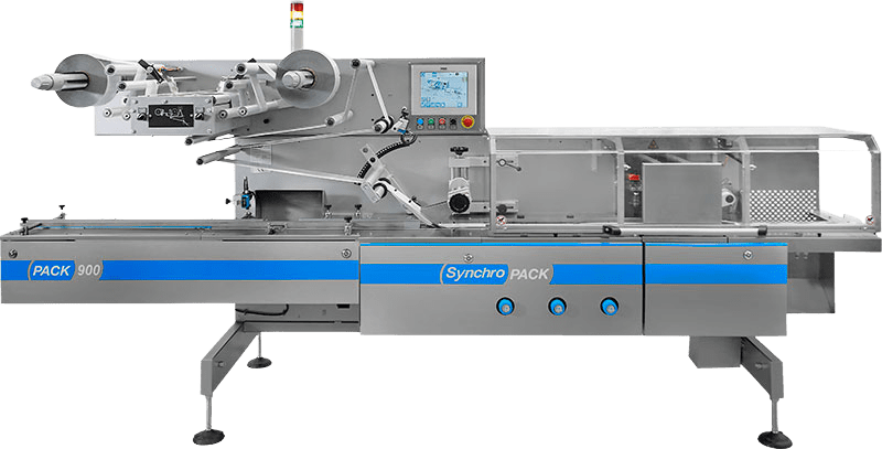 La Pack 900 (bobina superior) es la Envolvedora Flow pack Electrónica que propone Synchropack para productos regulares, para medias y altas producciones, con alimentaciones semiautomáticas o automáticas y múltiples cambios de formato.